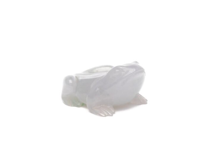 This one-of-a-kind lavender jade frog is a good luck charm meant for display and for carrying. The translucent pale lavender and light green jadeite glows beautifully under proper light, while the handcrafted design feels smooth in the hand.